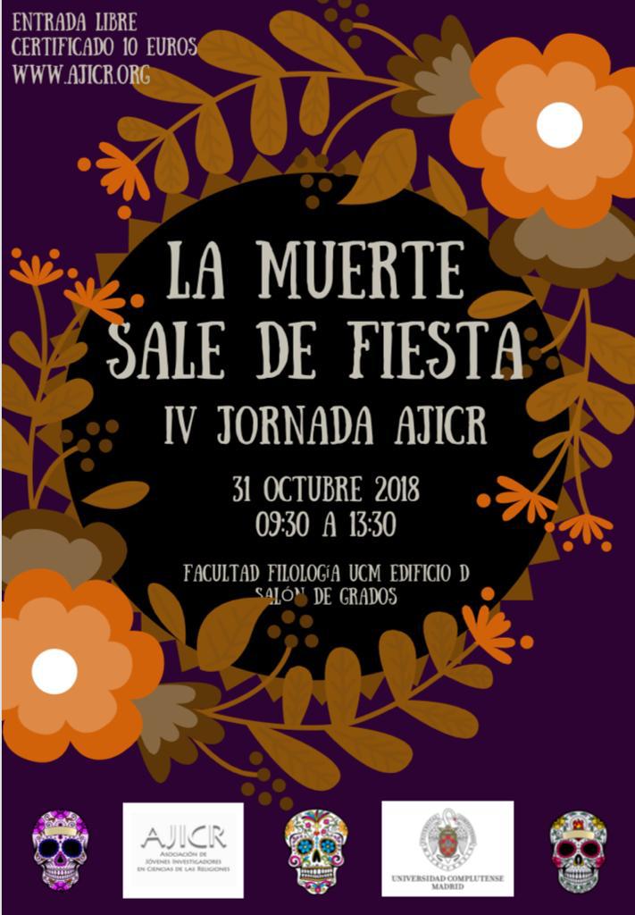 Con motivo de la tradicional festividad de los difuntos compartida en Occidente, la Asociación decidió dedicar sus IV Jornadas AJICR, celebradas el día 31 de octubre de 2018, al tratamiendo te la muerte, las actitudes ante ella y las festividades de los muertos en las diferentes religiones presentes y pretéritas, para lo cual contó con la participación de algunos de sus socios y de otros investigadores universitarios más avezados, como se puede comprobar en su programa.