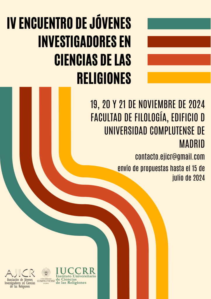 Desde la Asociación de Jóvenes Investigadores en Ciencias de las Religiones nos complace anunciarles la realización del IV Encuentro de Jóvenes Investigadores en Ciencias de las Religiones que tendrá lugar los días 19, 20 y 21 de noviembre en la Universidad Complutense de Madrid. El encuentro, con carácter internacional, se llevará a cabo de forma semipresencial.